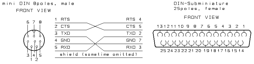 b. RS232 CABLE - 25 POLES DIN to 8 POLES MINIDIN